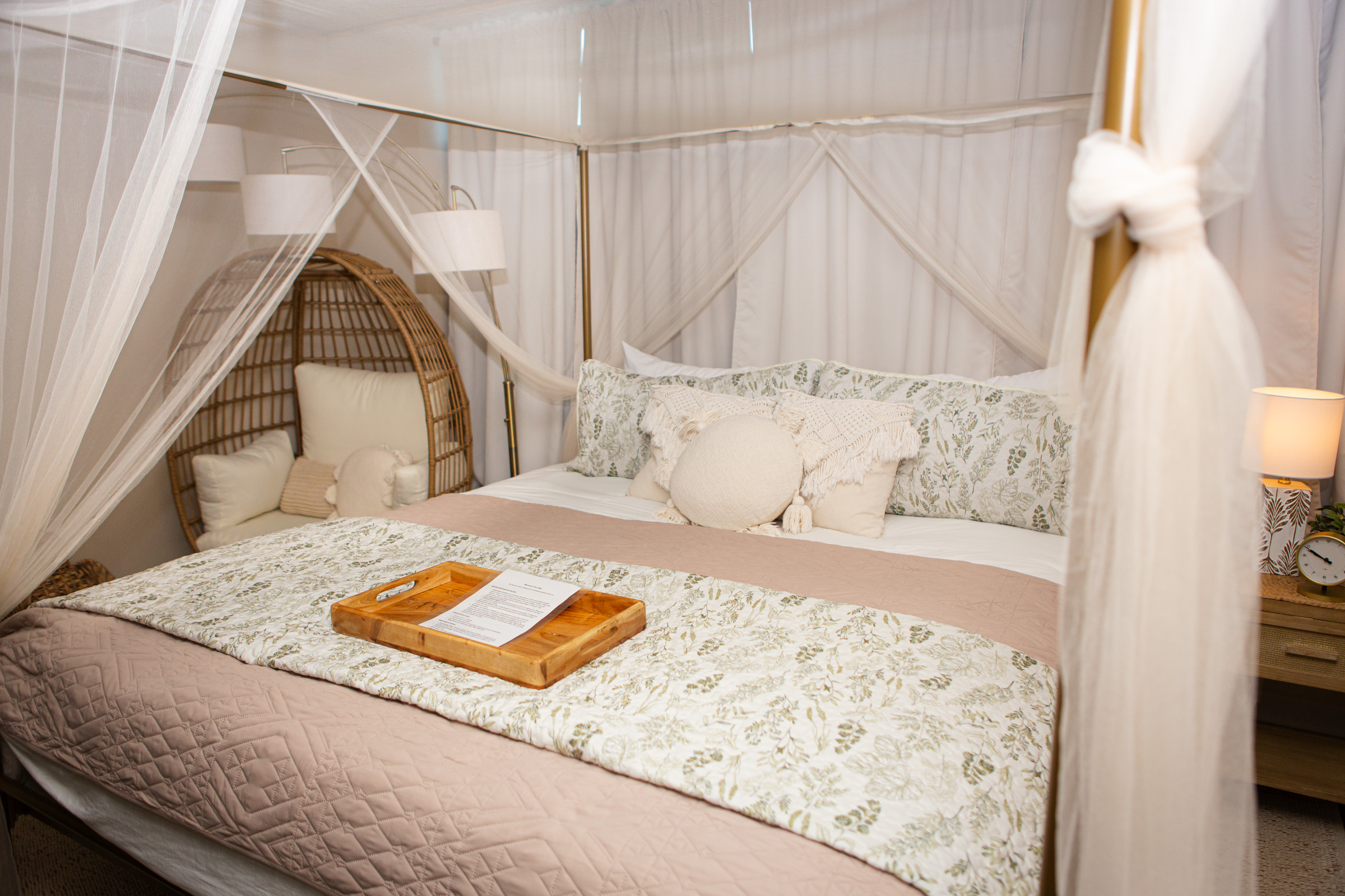 Step into your luxurious private suite, a modern tropical paradise. The exotic sand pathway and tranquil jungle setting melt stress away. The romantic King bed, fireplace, and adjustable mood lighting create an intimate ambiance. Indulge in serenity with a comfortable claw-foot tub for two, set in nature. For a quiet escape, you will find a hammock to truly unwind. The Cancun Suite is an exotic, modern paradise for an unforgettable stay.